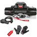 The ZEON 8-S is a 12-volt electric winch. It requires a vehicle mount and has a pull capacity of 8,000 pounds. It comes with 100 feet synthetic rope.